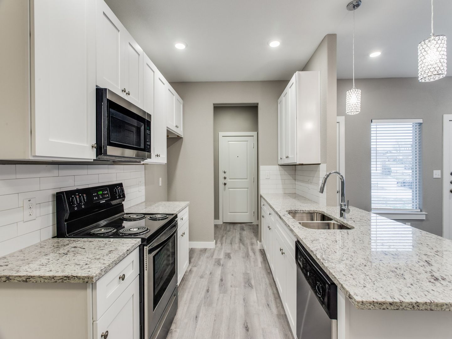 Beautiful house for rent in Fort Worth. 1114 Sq Ft, Featuring 3 Bedrooms, 2 Baths. Open floor plan. Kitchen features granite counters and white cabinetry. Backsplash, stainless appliances, recessed lights and a pantry. Fabulous master bedroom and master bathroom with granite counters and walk in shower with glass doors. Two additional bedrooms are great size with a shared modern bathroom. Luxury vinyl plank in the living, kitchen and bathrooms. Carpet in the bedrooms. 9 foot ceilings throughout. Fenced backyard. Separate utility room. 1 car garage. Pets welcome !!! Don't miss the opportunity to rent this home!